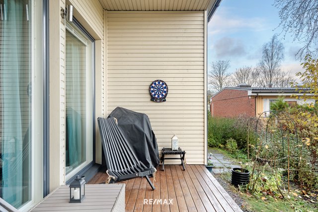 Viehättävä ja rauhallinen rivitalokoti yksityisine pihoineen tarjolla Vantaan Rajakylässä.