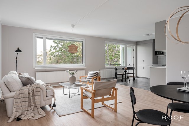 Tervetuloa tutustumaan tähän valoisaan ja juuri remontoituun neljän huoneen kerrostaloasuntoon Kivenlahden viihtyisällä alueella. Asunnon sydämenä toimii suuri olohuone, joka yhdistyy avokeittiöön luoden avaran ja modernin kokonaisuuden, täydellinen tila yhdessäoloon ja arjen sujuvuuteen. Tilavat makuuhuoneet ja runsaasti säilytystilaa takaavat asumismukavuuden myös isommalle perheelle. Märkätilat on uusittu vuoden 2018 linjasaneerauksen yhteydessä, joten ne vastaavat hyvin nykypäivän tarpeita.