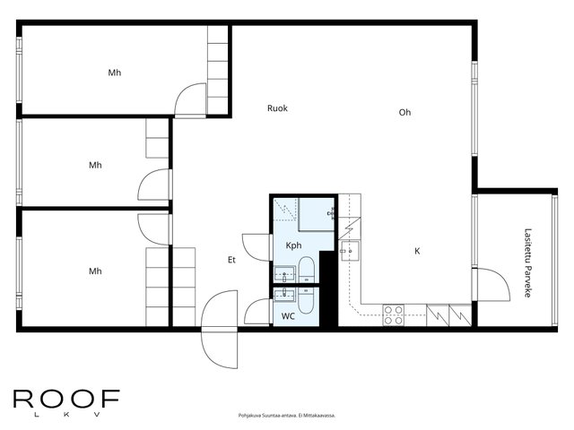 - Mainittu pinta-ala saattaa tämän ikäisessä kohteessa poiketa olennaisesti nykyisten standardien mukaan laskettavasta asuinpinta-alasta. Todellinen asuinpinta-ala voi olla yhtiöjärjestyksessä, isännöitsijäntodistuksessa ja esitteessä mainittua pienempi tai suurempi.