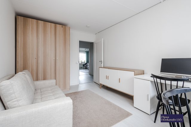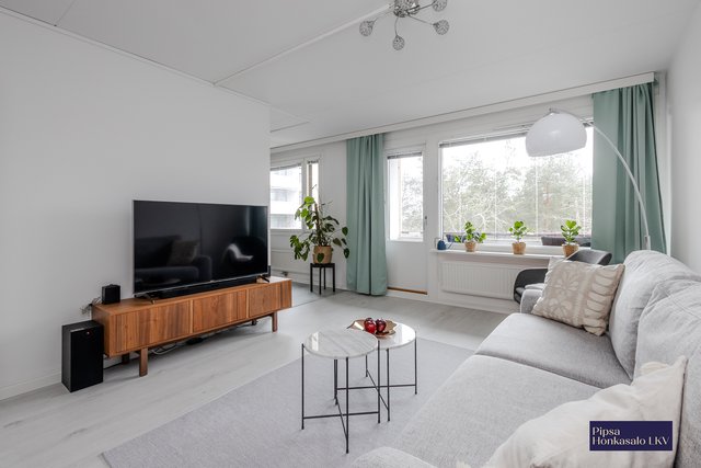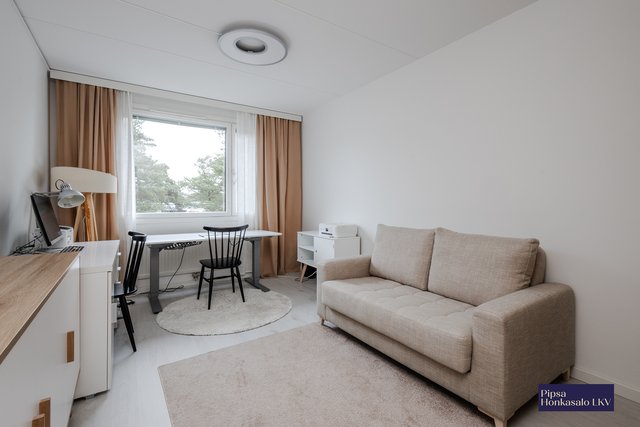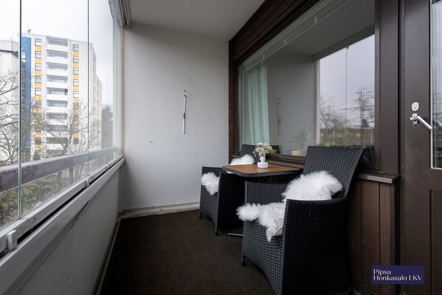- Valoisa olohuone, joka helppo kalustaa monin eri tavoin hyvän pohjaratkaisunsa ansiosta. Olohuoneesta käynti lasitetulle ja suojaisalle parvekkeelle, joka toimii lisähuoneena lasituksensa ansiosta aikaisin keväästä myöhäiseen syksyyn asti. Olohuone jatkuu luontevasti keittiön ruokailutilaan, jonne mahtuu hyvin suurempikin pöytäryhmä ison ikkunan äärelle.