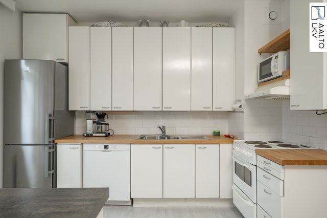 Tilava ja hyväkuntoinen kulmahuoneisto, jossa on lasitettu parveke. Remontoidussa asunnossa on kaksi makuuhuonetta, olohuone, ruokailutila, keittiö, kylpyhuone, erillinen wc, vaatehuone ja lasitettu parveke. Ruokailutila on mahdollista palauttaa makuuhuonekäyttöön. Parveke on rauhallisen pihan puolella, ilmansuunta on luode.