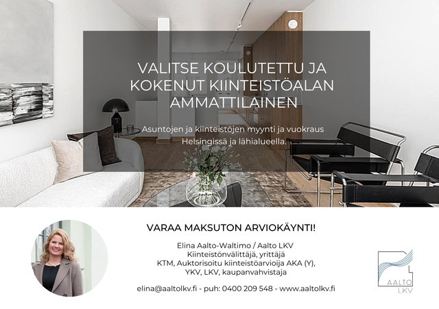 Tätä asuntoa myy Elina Aalto-Waltimo, Kiinteistönvälittäjä, yrittäjä, KTM, YKV, LKV, kiinteistöarvioija AKA (Y), kaupanvahvistaja