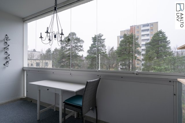 Tilava ja hyväkuntoinen kulmahuoneisto, jossa lasitettu parveke