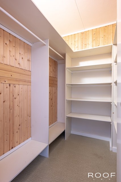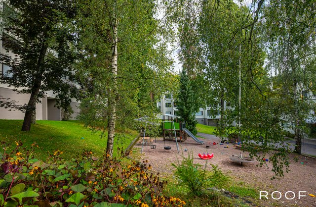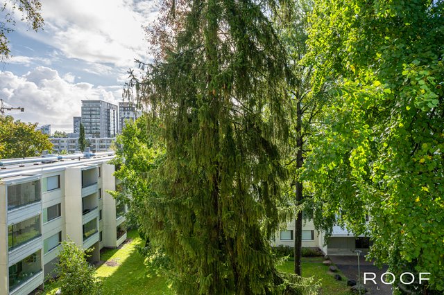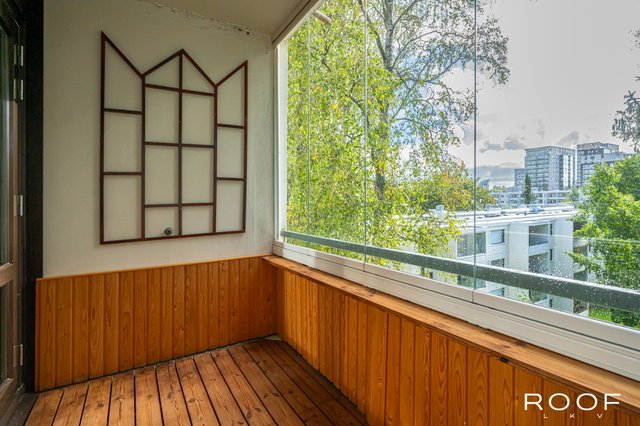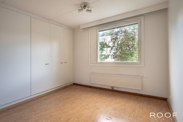 Tilat ovat selkeästi ja käytännöllisesti jaettu: keittiö ja olohuone muodostavat kodin sydämen ja neljästä makuuhuoneesta löytyy jokaiselle perheenjäsenelle oma rauhallinen sopukkansa. Makuuhuoneissa olevien komeroiden lisäksi kaksi vaatehuonetta tarjoavat runsaasti säilytystilaa. Oma sauna kutsuu hengähtämään päivän päätteeksi. Saunan jälkeen voit rentoutua lasitetulla parvekkeella, josta avautuu puistomainen näkymä taloyhtiön vehreälle piha-alueelle.