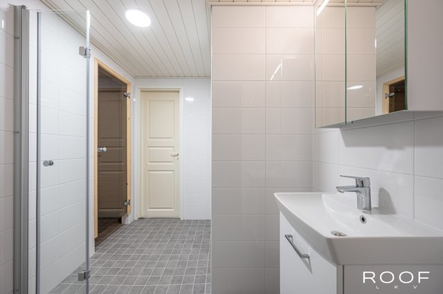 - Linjasaneerauksen yhteydessä kauttaaltaan saneerattu kylpyhuone modernilla varustuksella.