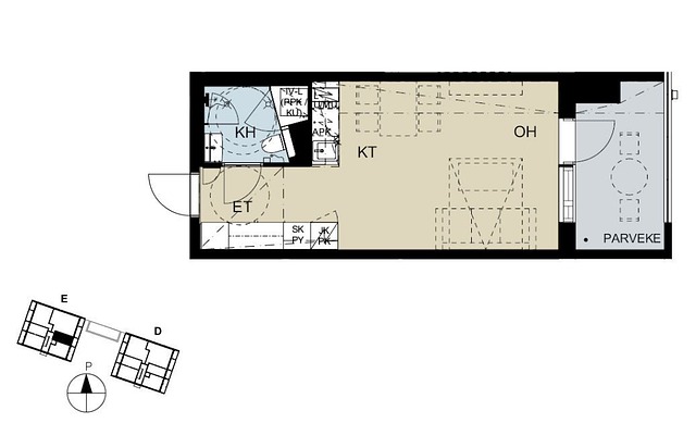 Esteetön käynti tähän toisen kerroksen kotiin, jossa mukavasti kaappitilaa ja tilava lasitettu parveke. Näkymät on vehreälle sisäpihalle. Sopivan kokoisessa kylpyhuoneessa tila pesukoneelle ja hyllytilaa on nerokkaasti piilotettu katseilta kylpyhuonekaapistoon. Keittotila on modernisti varusteltu ja integroidut kodinkoneet tekevät kokonaisuudesta harmonisen.