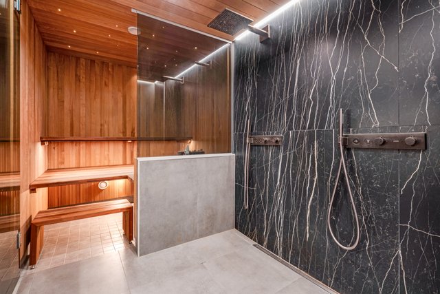 - Kattopanelointi haapaa, seinälaatat 60x120, lattialaatat 60x60.