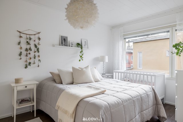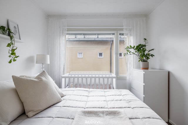 - Makuuhuoneita on 2 kpl. Molemmissa makuuhuoneissa on liukuovikaapistot. Lattiat on tammiparkettia, seinät maalatut. Lattialämmitys (sähkö).