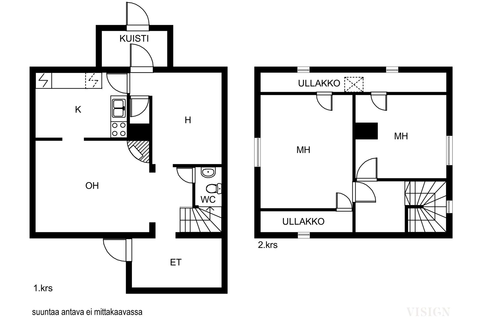 - Pinta-alatiedot on saatu RAHU-kortista, rakennuspiirustuksista / myyjältä, eikä niitä ole tarkistusmitattu, joten ne saattavat poiketa olennaisestikin nykymääräysten mukaan mitattavista pinta-aloista.