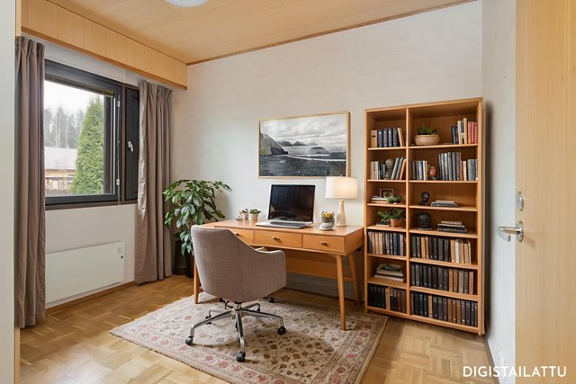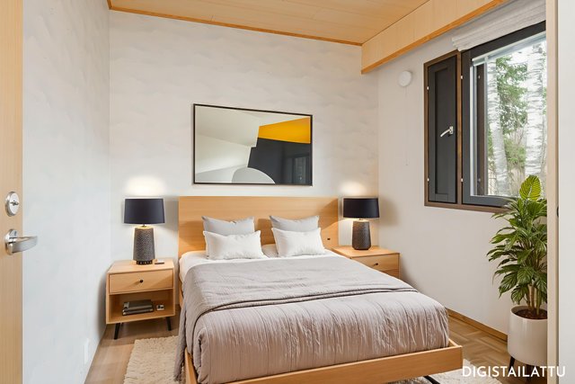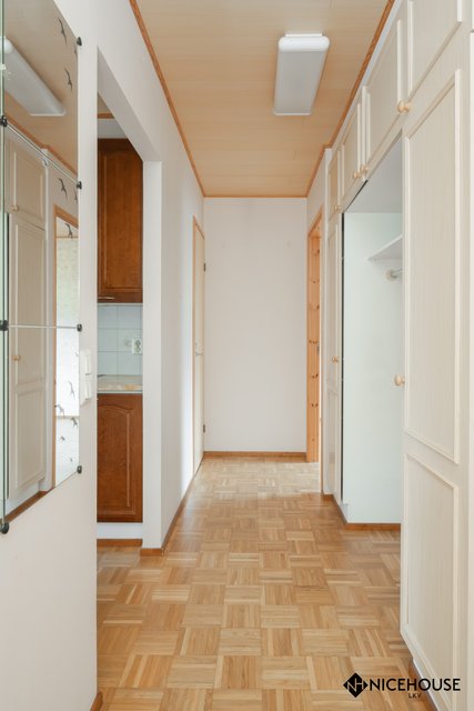 - Makuuhuoneista kaksi sijaitsee vastakkain sisäänkäynnin lähettyvillä. Yksi makuuhuone on omassa rauhassaan.