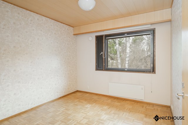 Kolme makuuhuonetta tarjoavat rauhallisen oma tilan jokaiselle asukkaalleen. Ne sopivat vaihtoehtoisesti myös työ- tai harrastehuoneiksi. Kodinhoitohuoneesta on käynti suoraan takapihalle, mikä helpottaa arjen askareita. Kylpyhuone ja sauna on uusittu vuonna 2019, joten ne ovat modernit ja viihtyisät. Erillinen wc on käytännöllinen ja tilava. Kaapistojen lisäksi säilytystilaa on vaatehuoneessa.