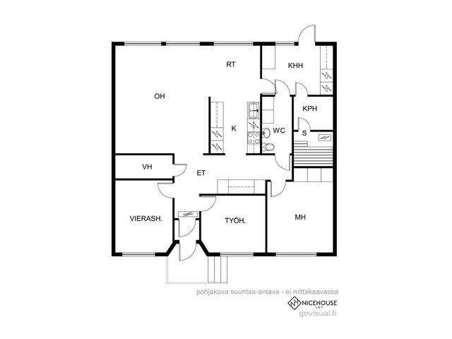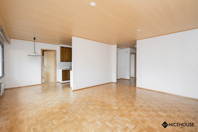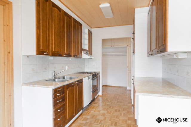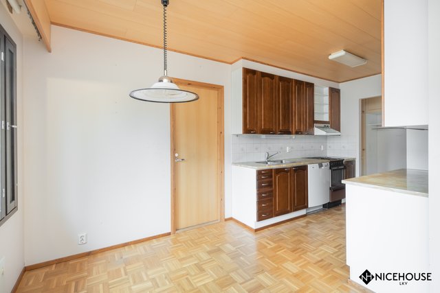 - Keittiö on helppo muokata täysin avokeittiöksi keittiöremontin yhteydessä. Keittiön päädyssä on tila ruokailuryhmälle ikkunan ääressä.
