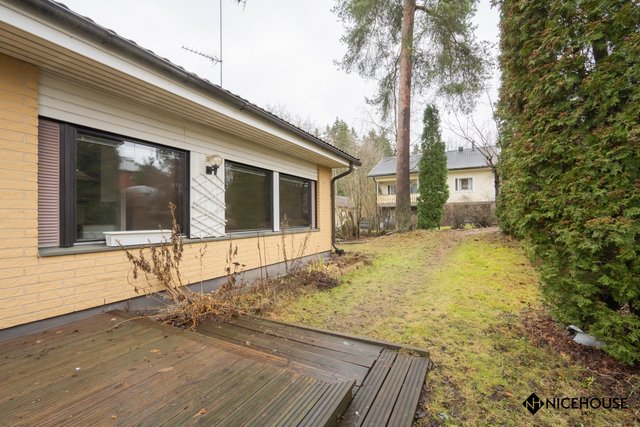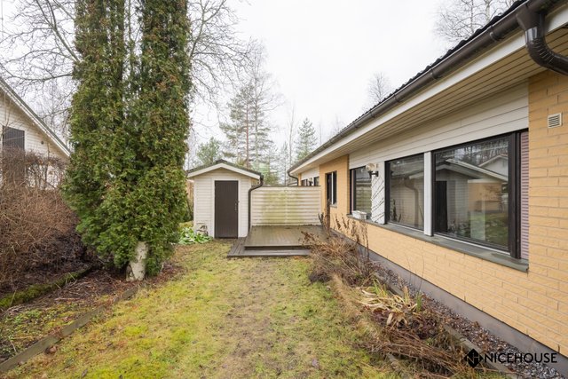 - Talon piha on todella tilava ja jää talon suojaan. Pihalla on nurmialue, terassialue ja istutuksia.