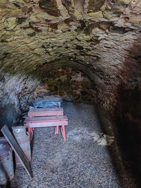 Kellari: Katto kokonaan uusi ja huopa. Etuosan ja välioven muuraus tehty uudelleen. Sora lattialle ja vedenpoisto. Punamultamaali.