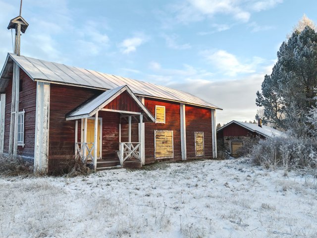 Meijeripuoli: Perustus ja 3-4 alinta hirsikertaa, Romahtanut lattia. Ovet korjattu. Huopa katolle. Ulkomaalaus punamulta. Vellikello jalusta 60cm nosto