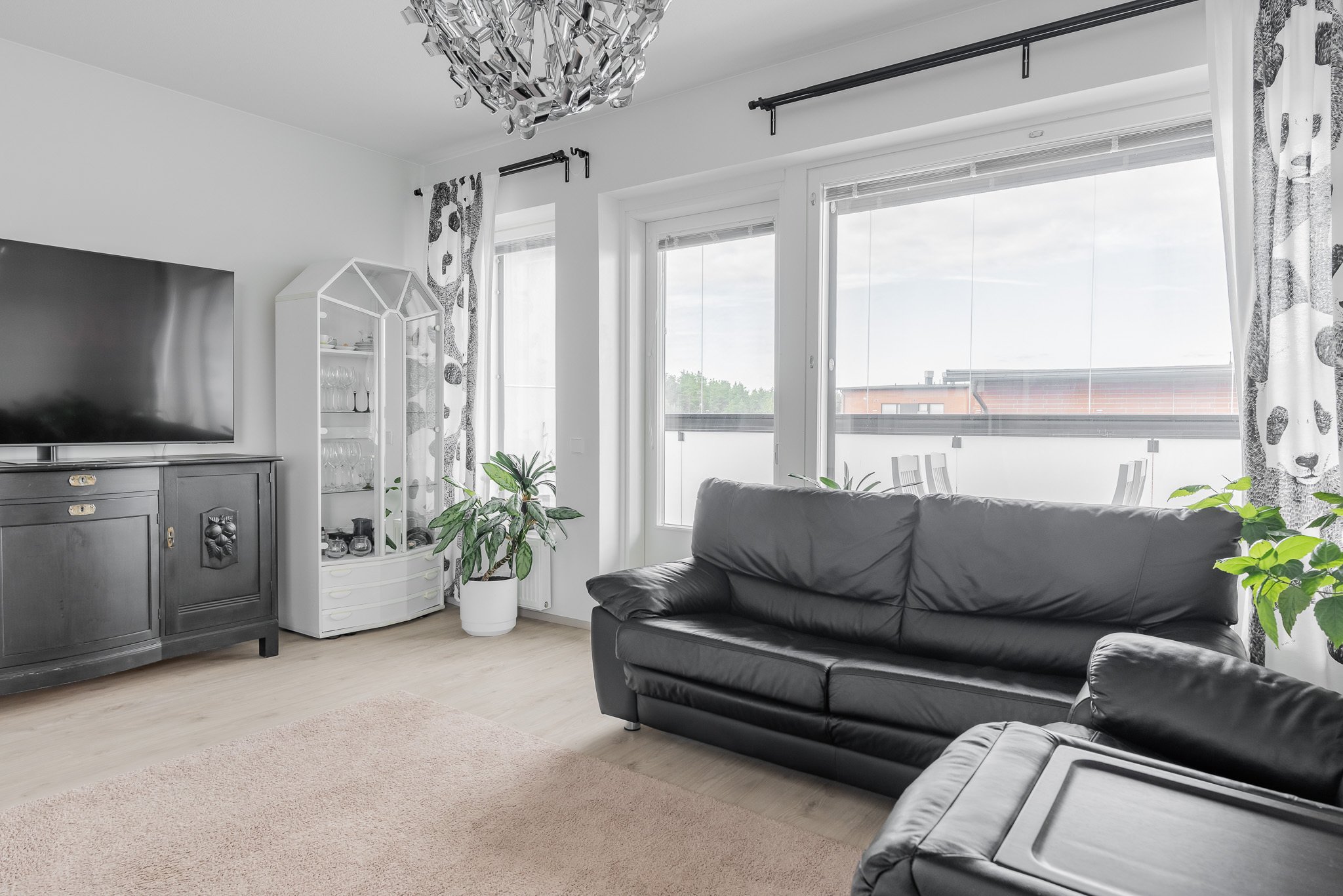 Asunto sijaitsee talon ylimmässä kerroksessa, mikä takaa rauhallisen asumisen sekä kauniit näkymät. Kodin sydämen muodostaa avara ja valoisa olohuone, joka yhdistyy tyylikkääseen avokeittiöön. Tilava lasitettu parveke jatkaa olohuonetta ja tarjoaa ihanan lisähuoneen keväästä pitkälle syksyyn.