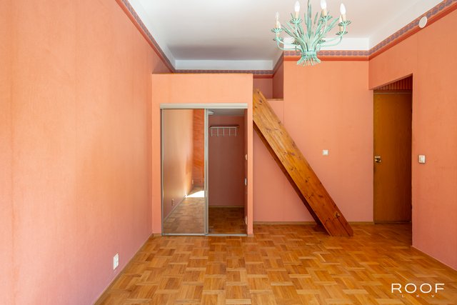- LATTIA: Parketti SEINÄT: Tapetti Parvi, jonka alla vaatehuone. Parven mitat noin 153 x 187 cm.