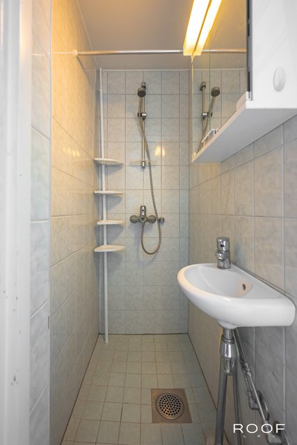 - LATTIA: Laatta SEINÄT: Laatta VARUSTELU: Allas, hana, peilikaappi, wc-istuin, suihku, pyyhekuivain
