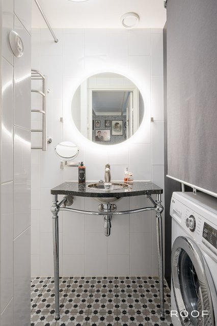 - Kylpyhuone uusittu huoneistoremontin yhteydessä 2019. Risto-Matti Ratian suunnittelemat Kranan hanat.