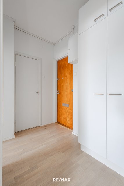 Asuntoa on pintaremontoitu vuonna 2021, jolloin remontoitiin myös keittiö. Asunnossa on kauniit parkettilattiat ja maalatut seinät. Kylpyhuoneessa paikka pyykinpesukoneelle.