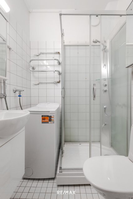- WC-istuin, suihkukaappi, pesukone, peilikaappi, bidee-suihku, allaskaappi, ja pesukoneliitäntä