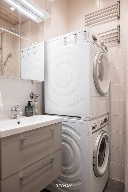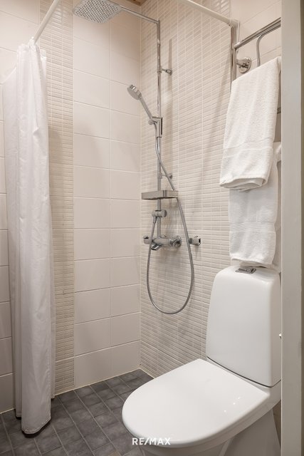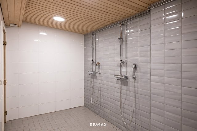 - Kylpyhuoneen seinät ja lattiat laattaa, tilaa pesutornille, wc-istuin, rättipatteri, lattialämmitys, peilikaappi ja allaslaatikosto (uusittu 2025 joulukuussa), suihku.