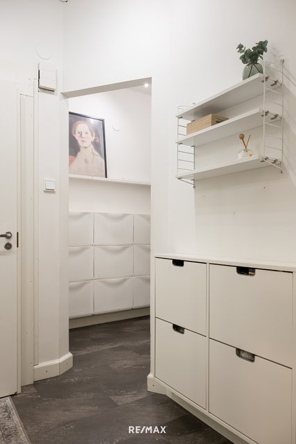 Säilytystilaa kodissa on runsaasti. Tilavat kaapistot kaikissa makuuhuoneissa, eteisessä sekä olohuoneessa ja lisäksi hyvän kokoinen varastotila yhtiön kellarikerroksessa.