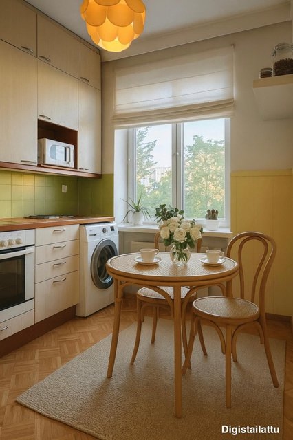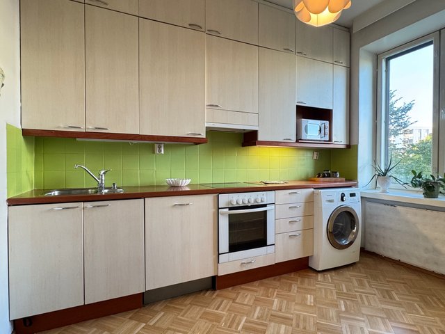 - Keittiö on kivan kokoinen ja sinne mahtuu mukavasti 4 hengen ruokailuryhmä. Keittiön parkettilattia kunnostettu 2025