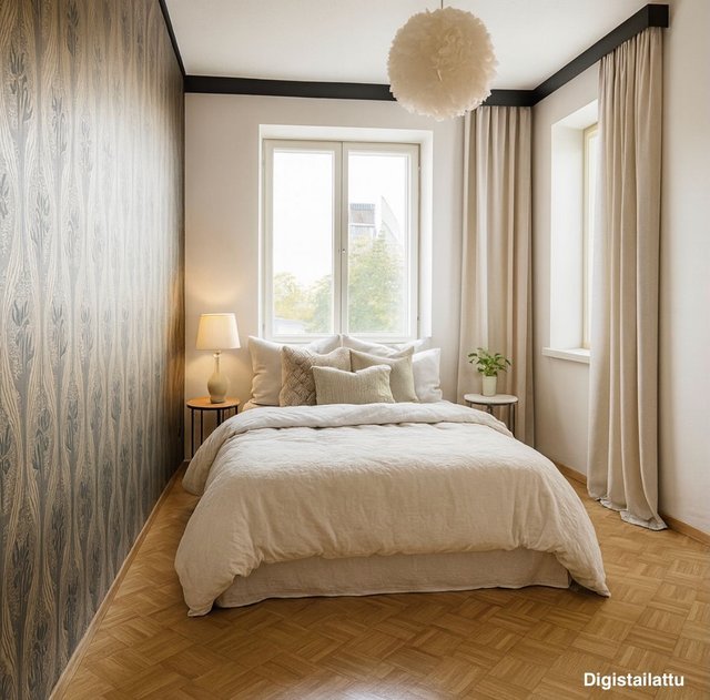 Kaksi makuuhuonetta tarjoavat monipuoliset mahdollisuudet perheen tarpeisiin tai työtilaksi.