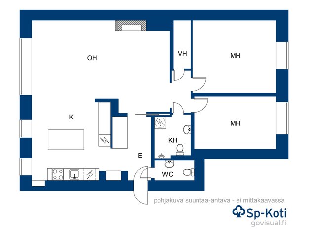 3 h, avokeittiö, kph, wc