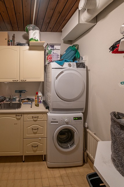- Lattiakaivo, pyykkikaapit, pöytätaso, ja pesukoneliitäntä