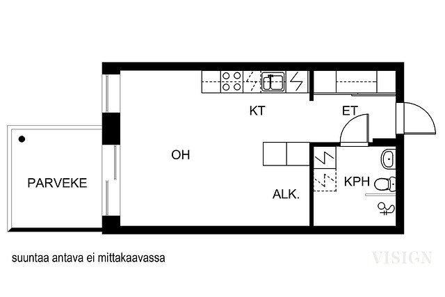 - Lisätietoja sisältyvistä varusteista: huoneistokohtainen ilmanvaihtokone, kaapistot, kiinteät valaisimet, sälekaihtimet/rullaverhot, verhotangot