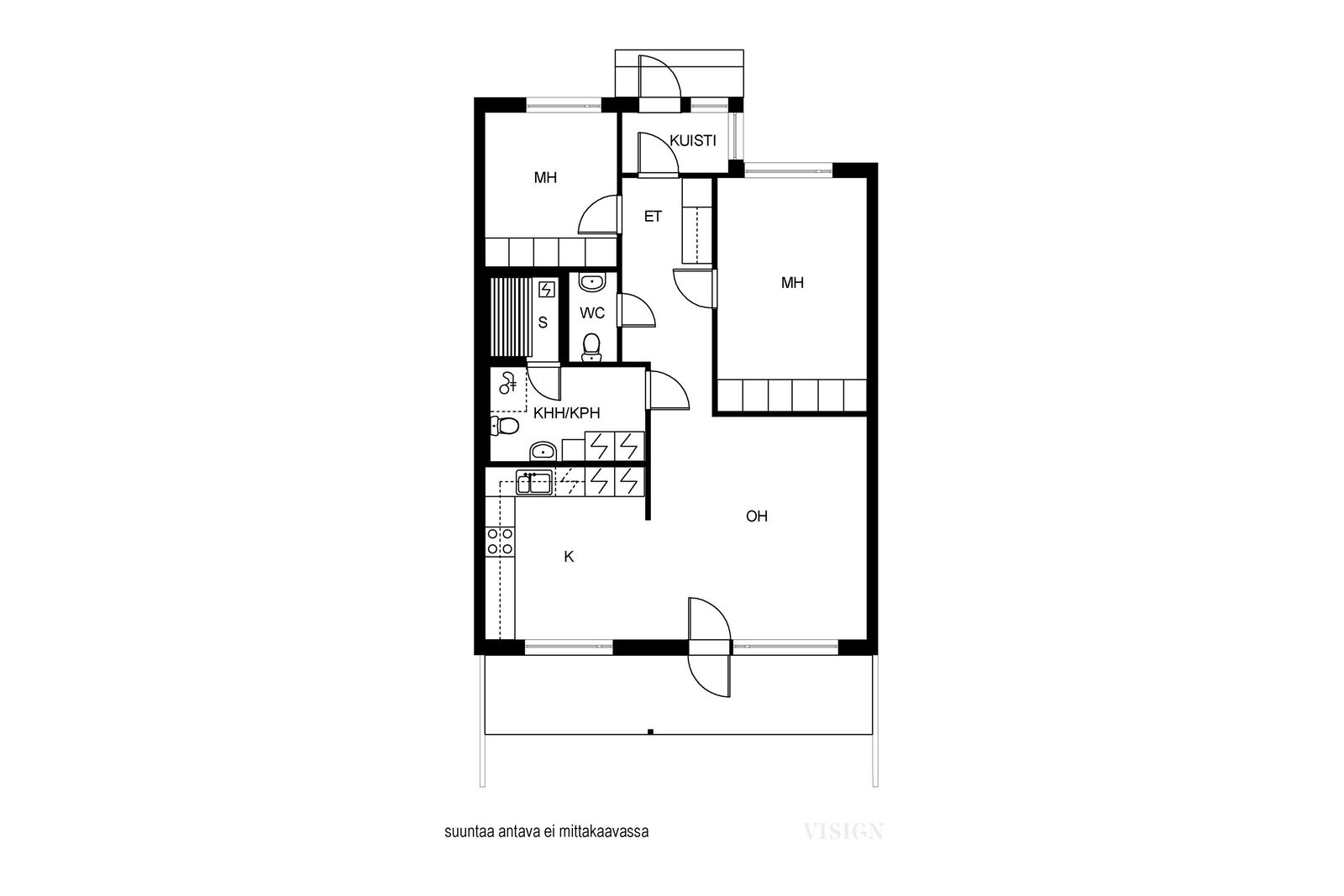 - Pesukoneliitäntä, wc-istuin, allaskaappi, lattialämmitys, peilikaappi, suihku, ja kiinteät valaisimet