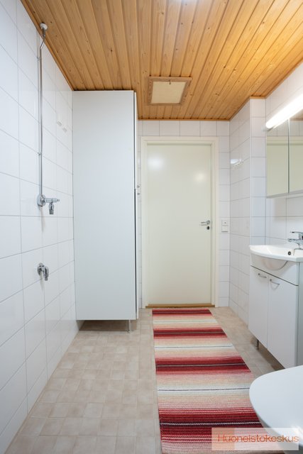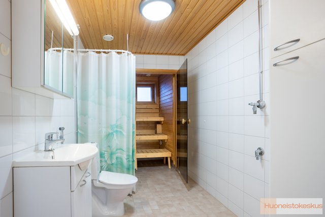 - WC-istuin, suihku, pesukoneliitäntä, lattialämmitys, ja peilikaappi