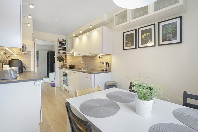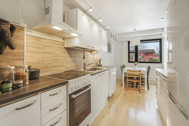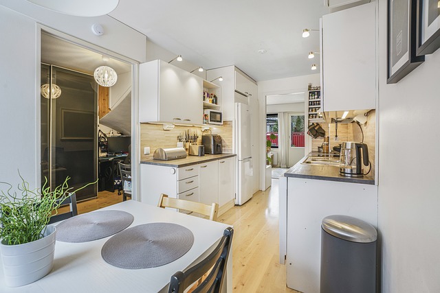 Asunnon sydän on siisti keittiö, jossa hyvin säilytys-ja laskutilaa.