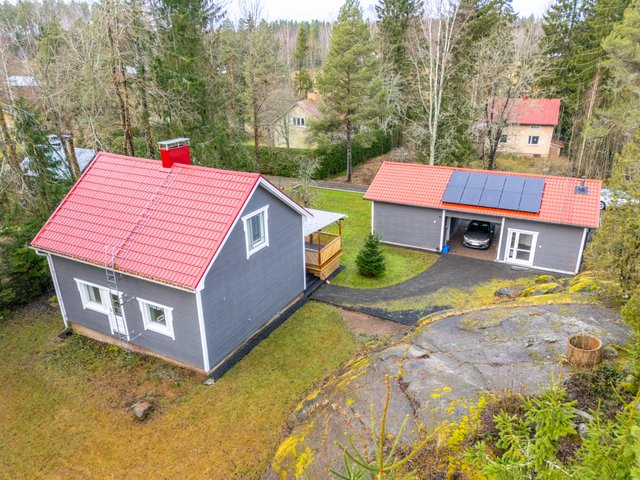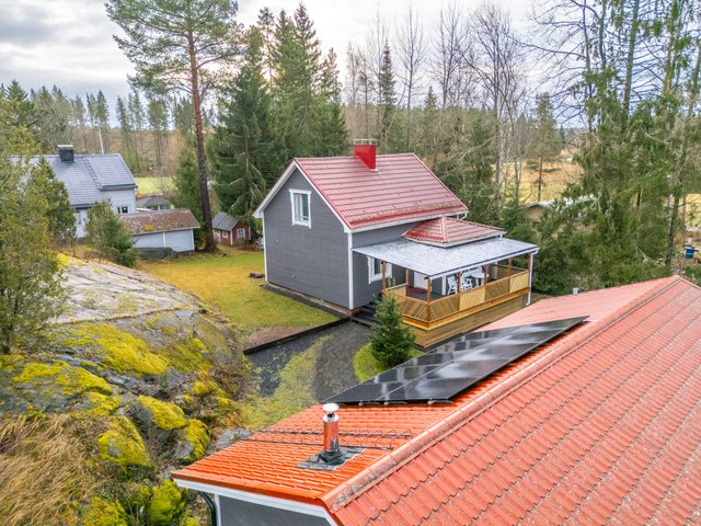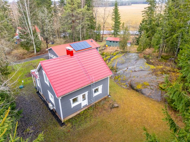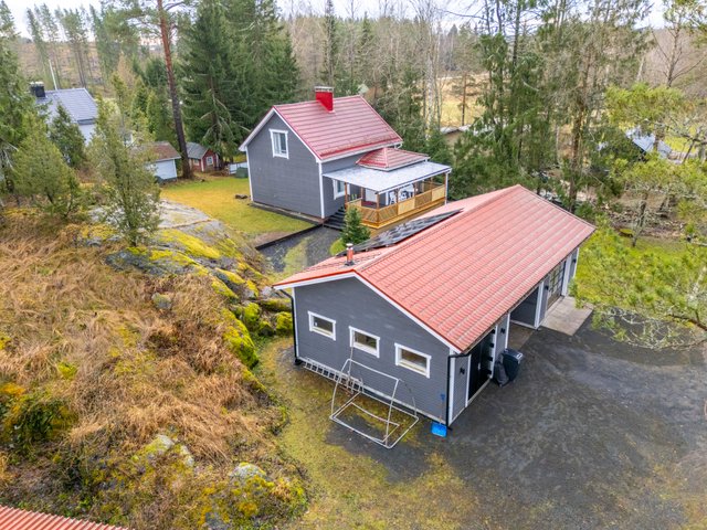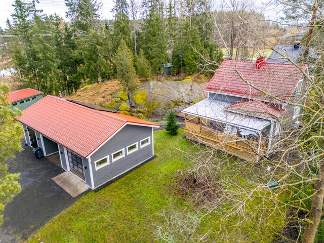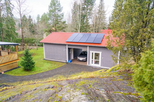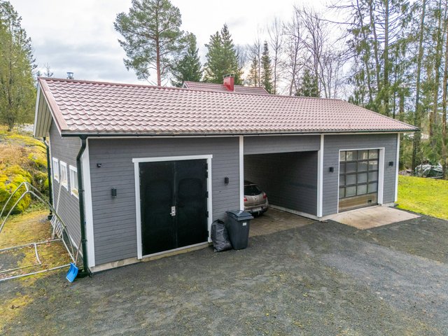 - Vuonna 2021 valmistunut piharakennus, jossa sauna, pesuhuone, pukuhuone, autoverstas ja varasto (n. 35 m²). Autotalli (n. 25 m²). Aurinkovoimala.