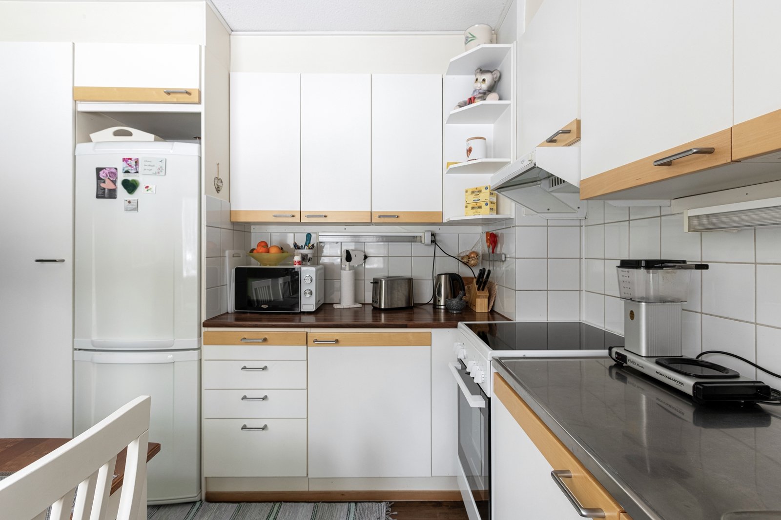 Kodin pohjaratkaisu on toimiva: tilava olohuone, makuuhuoneen ja eteisessä erillinen vaatehuone. Vuonna 2005 remontoidut märkätilat ovat siistissä kunnossa, ja oman saunan löylyistä pääset nauttimaan juuri silloin kun haluat. Olohuoneesta on käynti parvekkeelle, joka toimii kesäisin mukavana lisähuoneena.