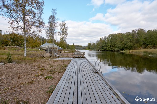 - Rantatontti hallinnanjakosopimuksella naapurin kanssa. Laituripaikka n. 5m ja venevalkamapaikka n. 7m. Moottoriveneellä (30-40hv moottorilla) meriteitse ovat: - Ahvenkoskenlahden läpi Suursalmeen/Storsunded, mistä pääsy avomerelle (n.20 min) - Loviisaan (n.40 min) - Kotkaan (n.45 min)