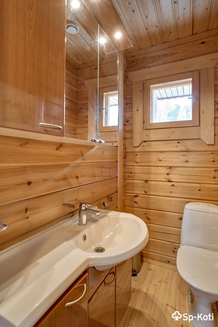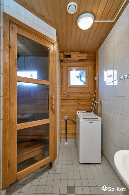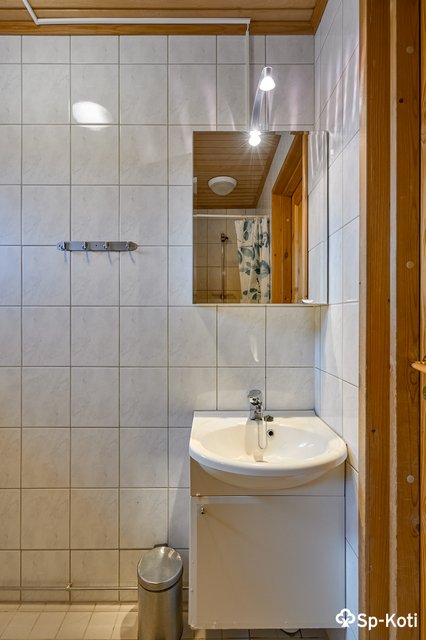 - Suihku, pesukoneliitäntä, lattialämmitys, peilikaappi, ja pesuallas
