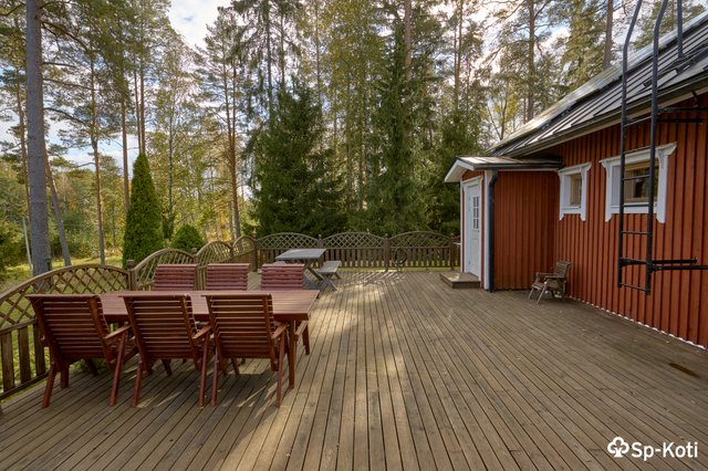 Kodin sydämenä toimii avara tupakeittiö, jota täydentävät neljä tilavaa huonetta. Saunaosasto kutsuu rentoutumaan, ja suurelta terassilta voit ihailla merta aamukahvilla tai ilta-auringon laskiessa.