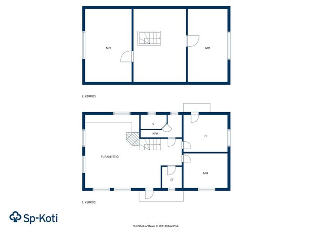 - Kaksi huonetta alakerrassa ja kaksi huonetta yläkerrassa.