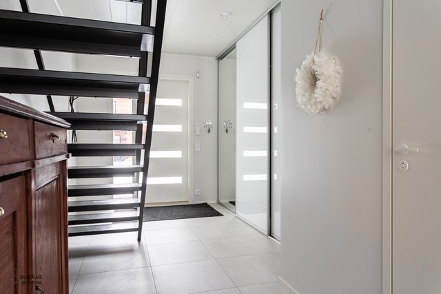 - Eteinen. Hyvät liukuovikaapistot. Huonekorkeus alakerrassa 2,7m, yläkerrassa 2,6m.