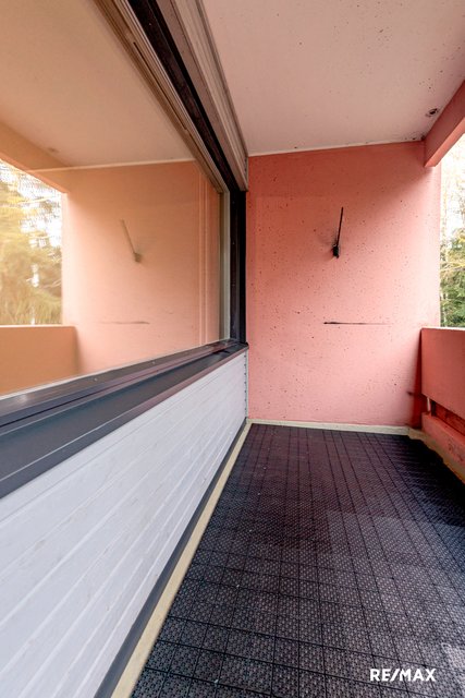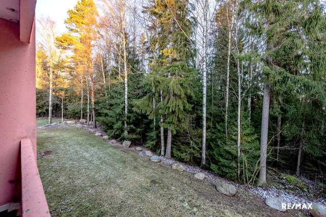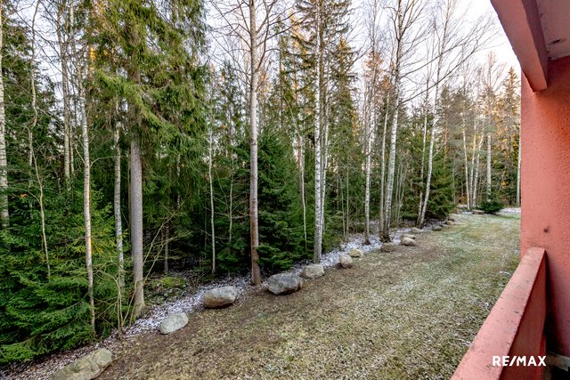 Olohuoneesta on käynti koko huoneiston levyiselle lasitetulle parvekkeelle, josta avautuu rauhalliset näkymät metsään.
