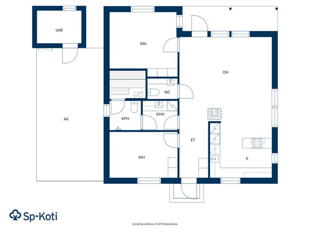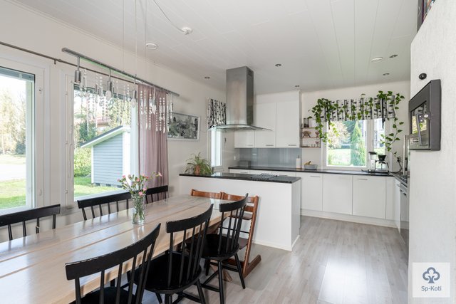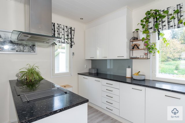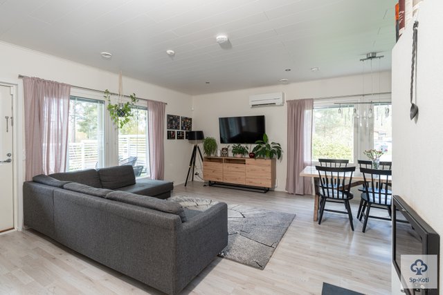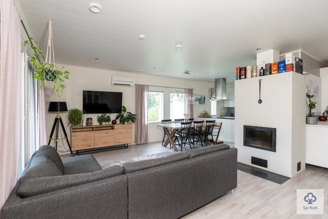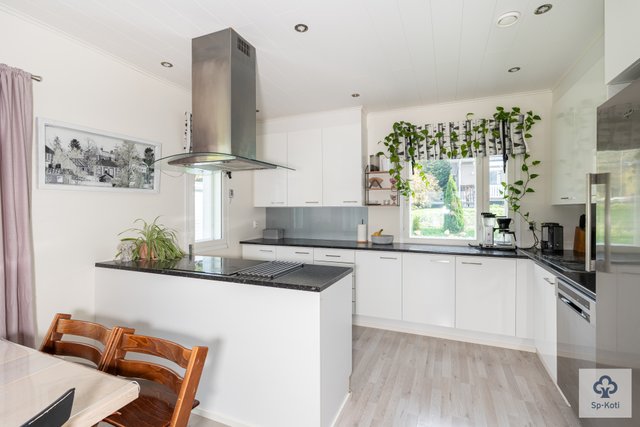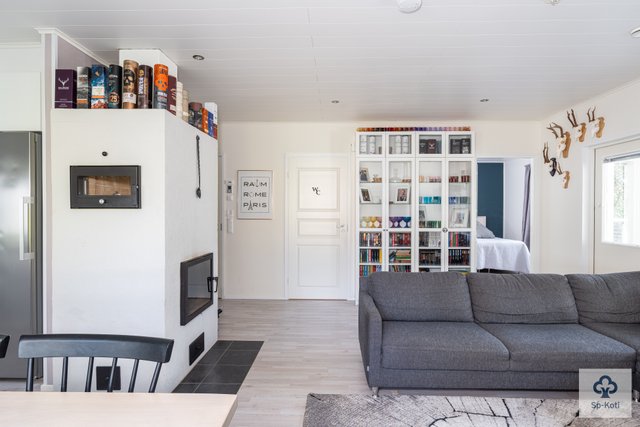 Asunnossa on selkeä ja toimiva pohjaratkaisu, tilavat huoneet ja valoisa tunnelma. Olohuoneessa varaava takka luo lämpöä ja fiilistä viileisiin iltoihin, ja modernista keittiöstä löytyy kaikki tarpeellinen – kuten induktioliesi sekä erillinen jääkaappi ja pakastin.
