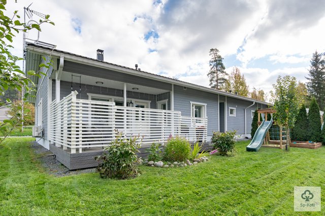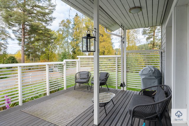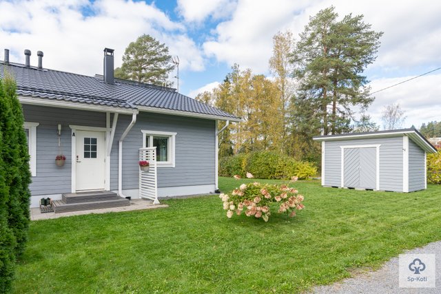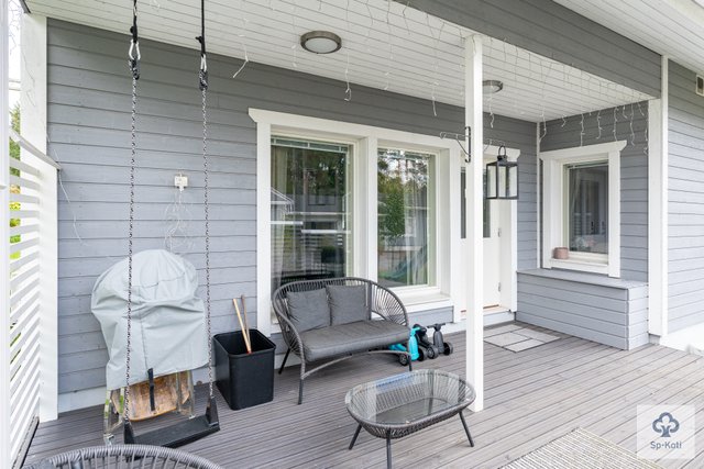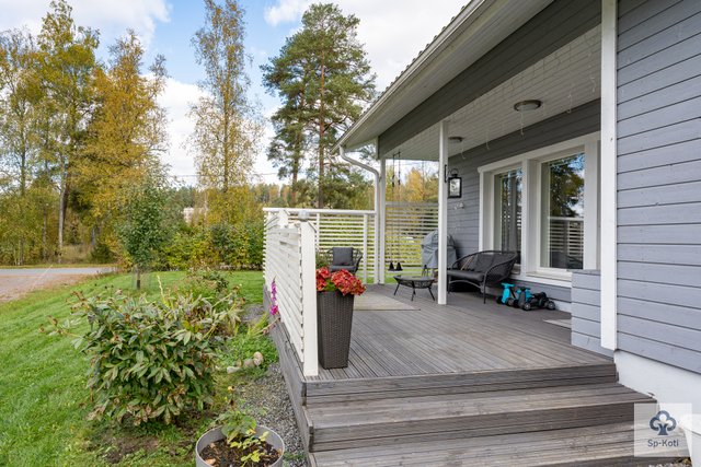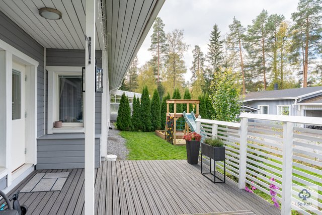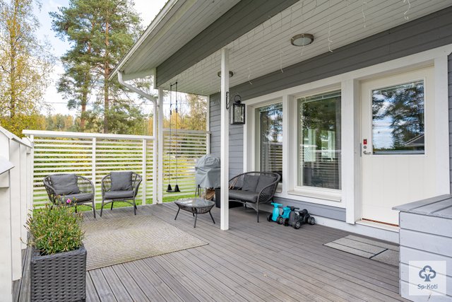 Takapihalta löytyy suojaisa terassi, jossa voi nauttia aamu- tai iltakahvit omassa rauhassa. Säilytystilaa on reilusti, kiitos lämpimän ja kylmän ulkovaraston.