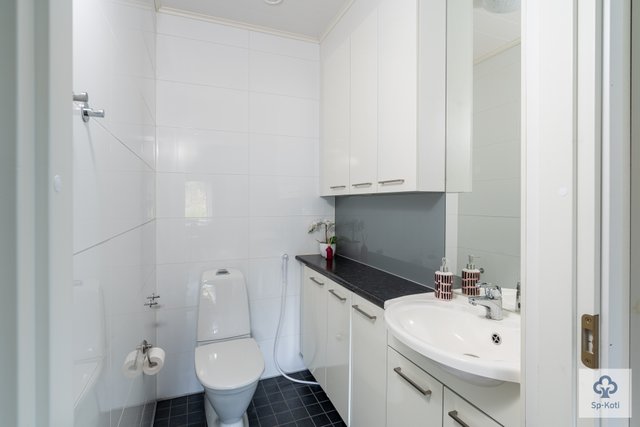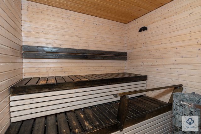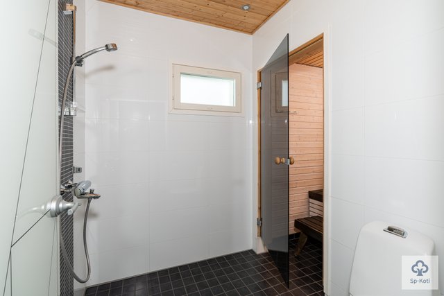 Kylpyhuoneessa ja kodinhoitohuoneessa on lattialämmitys, joka tekee arjesta vähän mukavampaa. Oman saunan löylyissä kelpaa rentoutua päivän päätteeksi!