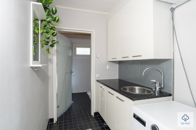 - Lattialämmitys, pesukoneliitäntä, ja tila pesutornille