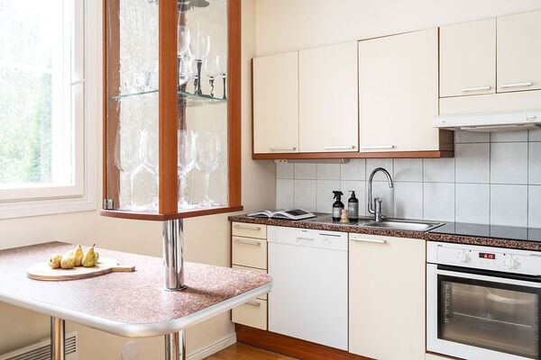 - Pöytätaso, pesukoneliitäntä, ja pyykkikaapit