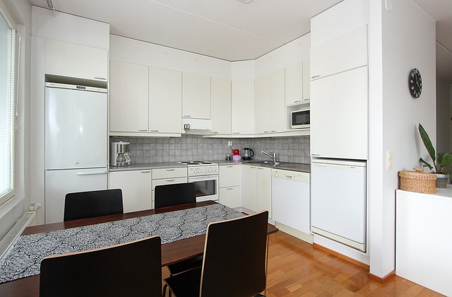 - Mikroaaltouuni, jääkaappipakastin, astianpesukone, ja liesi
