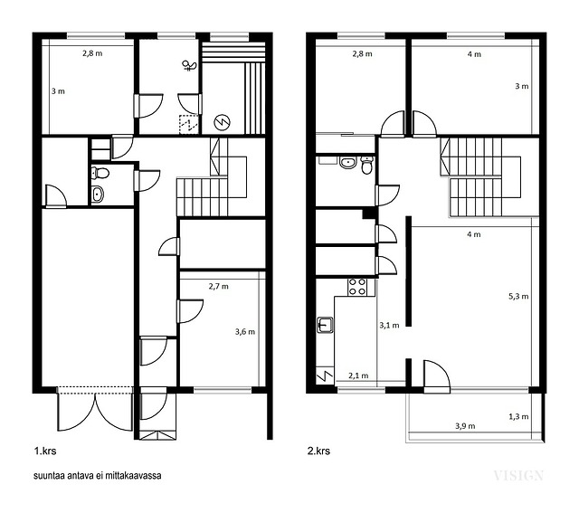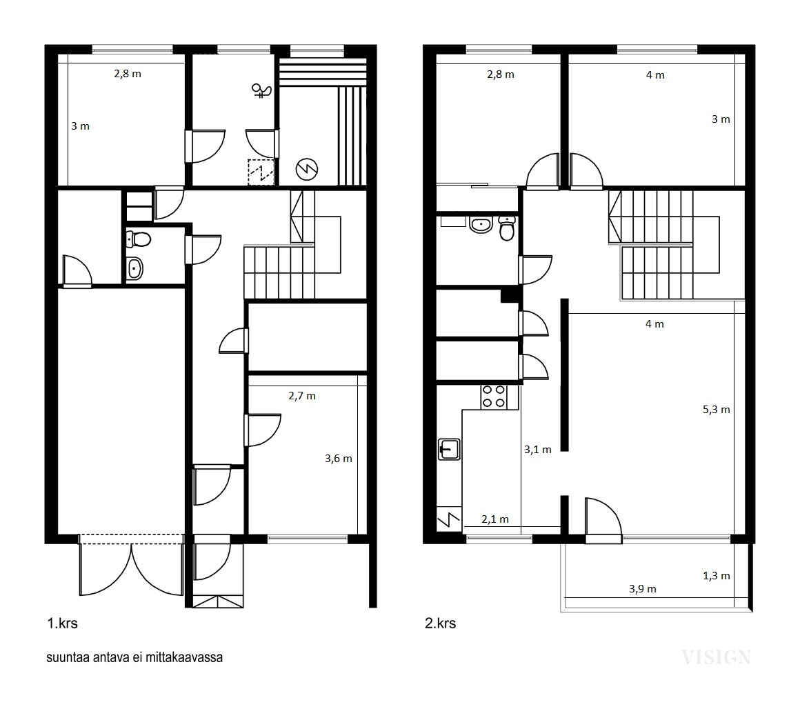 - Parketti: keittiö, olohuone ja yläkerran makuuhuoneet Laminaatti: alakerran makuuhuone ja eteinen Lankku: askarteluhuone Laatta: wc:eet, pesutila, sauna ja tuulikaappi Muovimatto: yläkerran komero ja alakerran vaatehuone